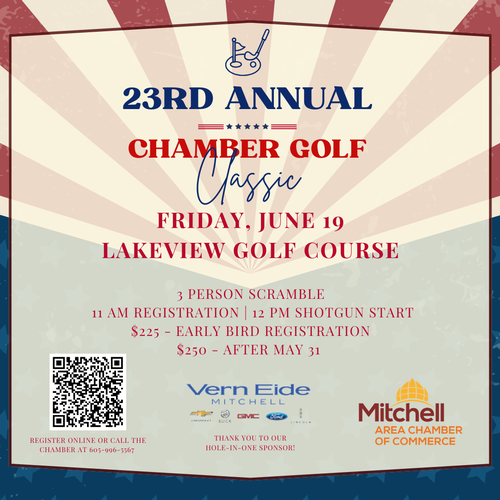 Name: 23rd Annual Mitchell Chamber Golf Classic: USADate: June 19, 2026Time: 11:00 AM - 7:00 PM CDTRegistration: Register Now