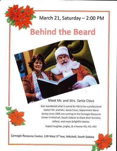 Ever wonder what it would be like to be a professional Santa? Mr. & Mrs. Santa Claus, department store Santas since 2005 are coming to the Carnegie Resource Center to share their funniest, jolliest, and most delightful stories.