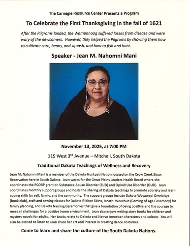 The Carnegie Resource Center presents a Program to celebrate the first Thanksgiving in the fall of 1621.