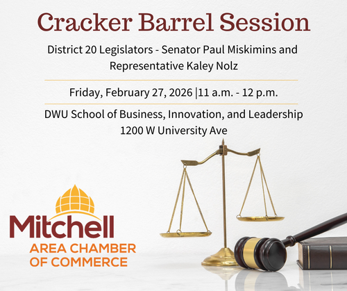 Event Description:Join the Mitchell Chamber’s Government Affairs Committee for a Cracker Barrel with District 20 Legislators!