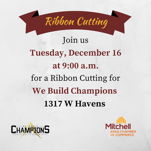 The Connect Mitchell Committee of the Mitchell Chamber invites you to a ribbon cutting celebration for We Build Champions!