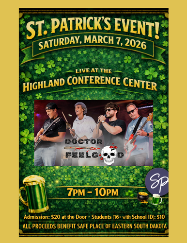 All proceeds benefit Safe Place of Eastern South Dakota — supporting survivors in our nine counties. Grab your green, bring your friends, and rock for a cause!