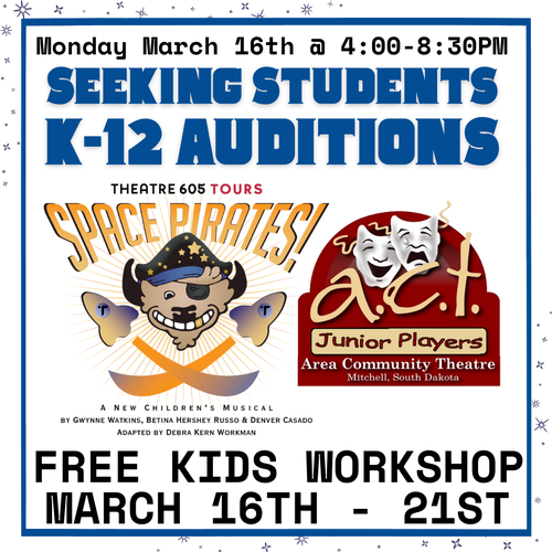 #SpacePirates #YouthTheatre #MitchellSD #AreaCommunityTheater #Theatre605 #SDArts #KidsOnStage #CreativeKids #LiveTheatre #ArtsEducation