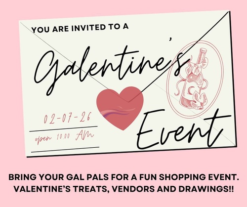 Join us for our annual Galentines event! Bring your gal pals and enjoy a day of new arrivals, amazing vendors, fun drawings and treats, of course!!